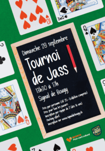 Rejoignez-nous pour ce tournoi de jass en toute convivialité ! Venez défier vos amis, profiter de l’ambiance chaleureuse et montrer vos talents de joueur-euse de cartes. Que vous soyez novice