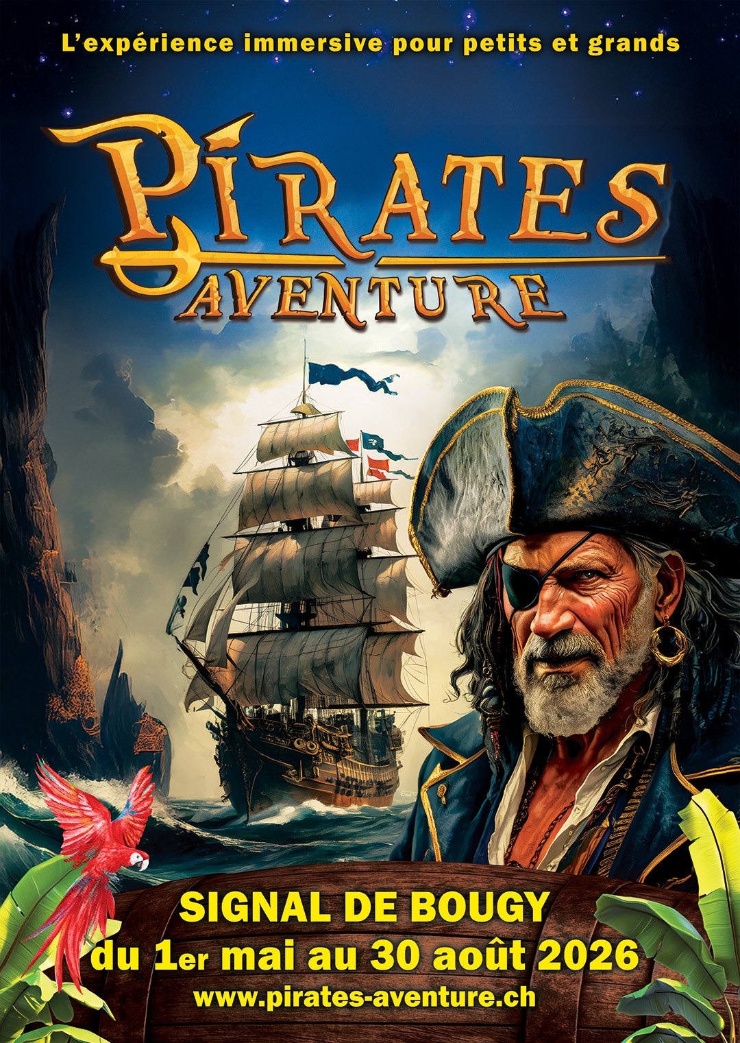 Pirates Adventure is coming to French-speaking Switzerland from 1 May to 30 August 2026, offering an immersive experience that plunges visitors into the heart of a true pirate adventure. Giant sets, a cinematic atmosphere and interactive puzzles punctuate a journey in which each family becomes the crew of a ship in search of a legendary treasure.